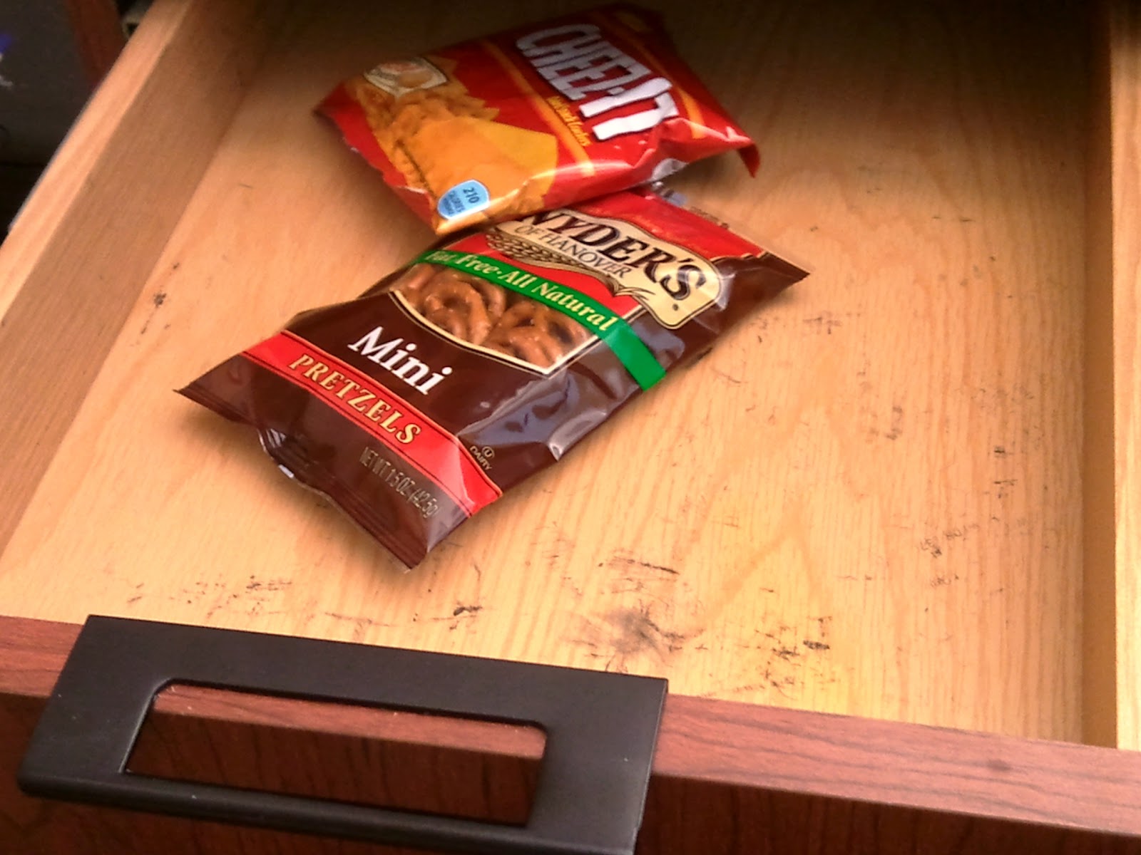 No matter the origin, there have been times when I’ve stockpiled various snack foods. Today’s photo was inspired by that habit and by a photo Matt Fields, The Morning Cruise producer, posted of one of his desk drawers. Here’s my photo for the day.
