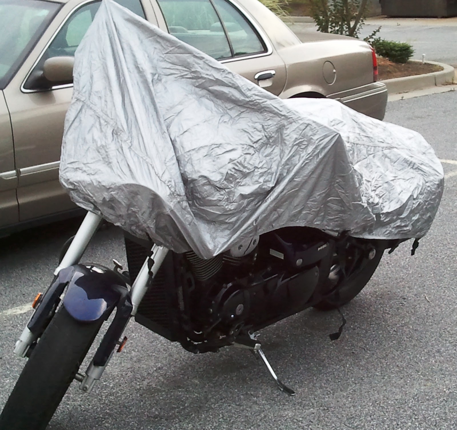 So most days, unless it’s actually raining or below freezing when it’s time to leave the house, I’ll ride the motorcycle. But I am always prepared for any change in the weather. Take today. Got up this morning, checked the forecast. Around a 30% chance of rain. Then just after 3 PM thunder and lightning rolled in. Then the showers. I was ready for them. There’s always a rain cover for the bike and rain gear (pants, jacket and boot covers) for me in the saddlebags.